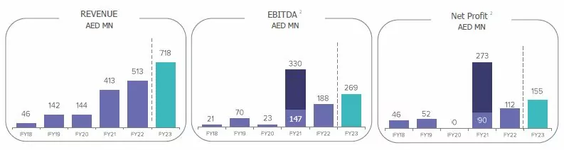 EBITDA: Increased by 43% year-on-year to AED 268.7 million in FY 2023