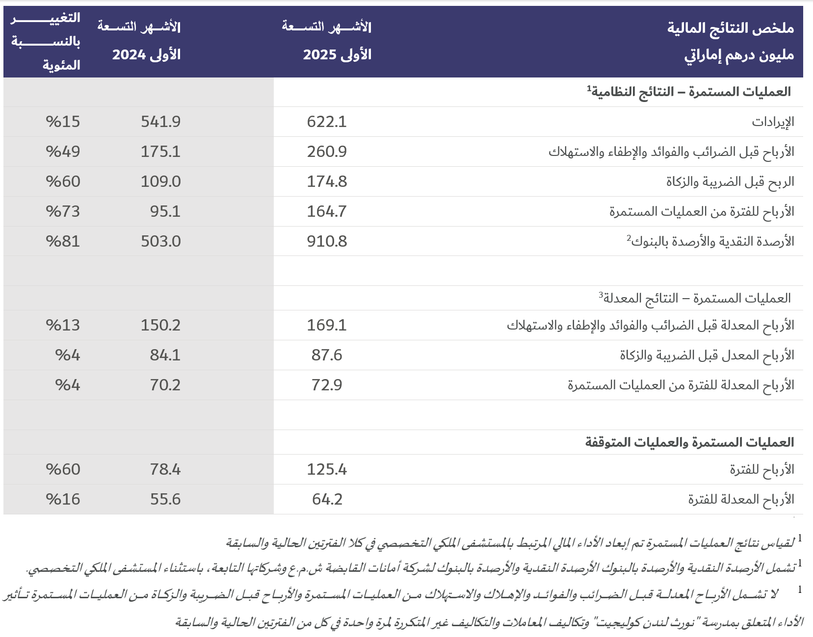 أبرز مؤشرات الأداء المالي للأشهر التسعة الأولى من عام 2025